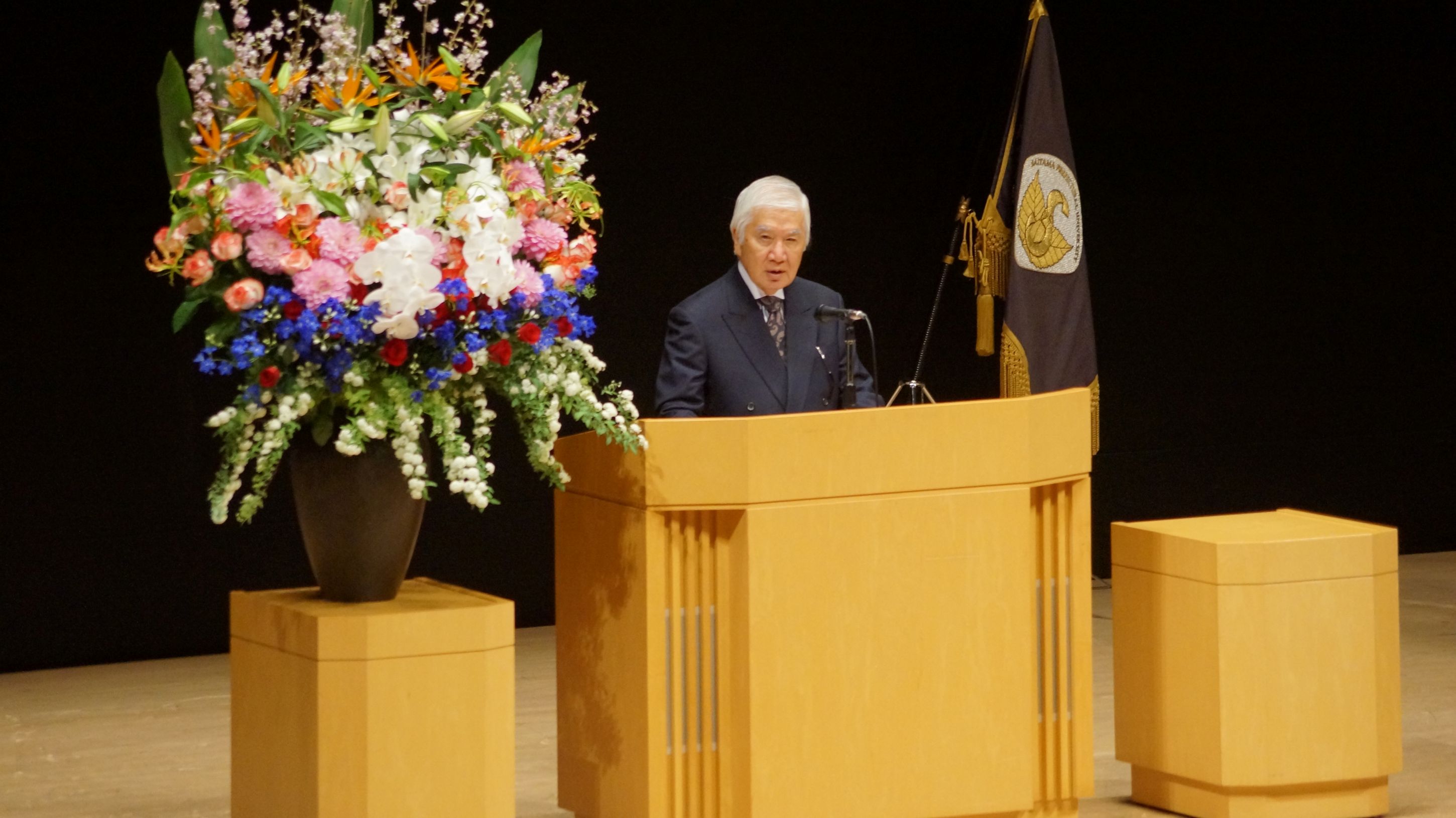 さてここからは、新入生の皆さんの本学への入学を歓迎する祝辞をお伝えします。