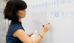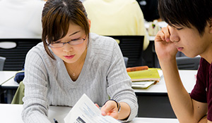 福祉子ども学専攻のカリキュラムの特徴は、福祉の知識をベースとしているところです。1年次には専門科目だけでなく専門基礎科目等で保健医療福祉に関する幅広い知識を習得し、さまざまな子どもの問題に多角的にアプローチするための基礎を培います。2年次からは幼稚園教諭・保育士に必要な実践的な科目が始まります。保育室を模した教室で実践的に保育技術を磨き、実習も体験します。3年次には専門を深めながら自分の関心を焦点化させ、4年次には自分のテーマに沿ったゼミに所属し卒業論文に取り組みます。