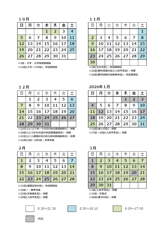 開館カレンダー