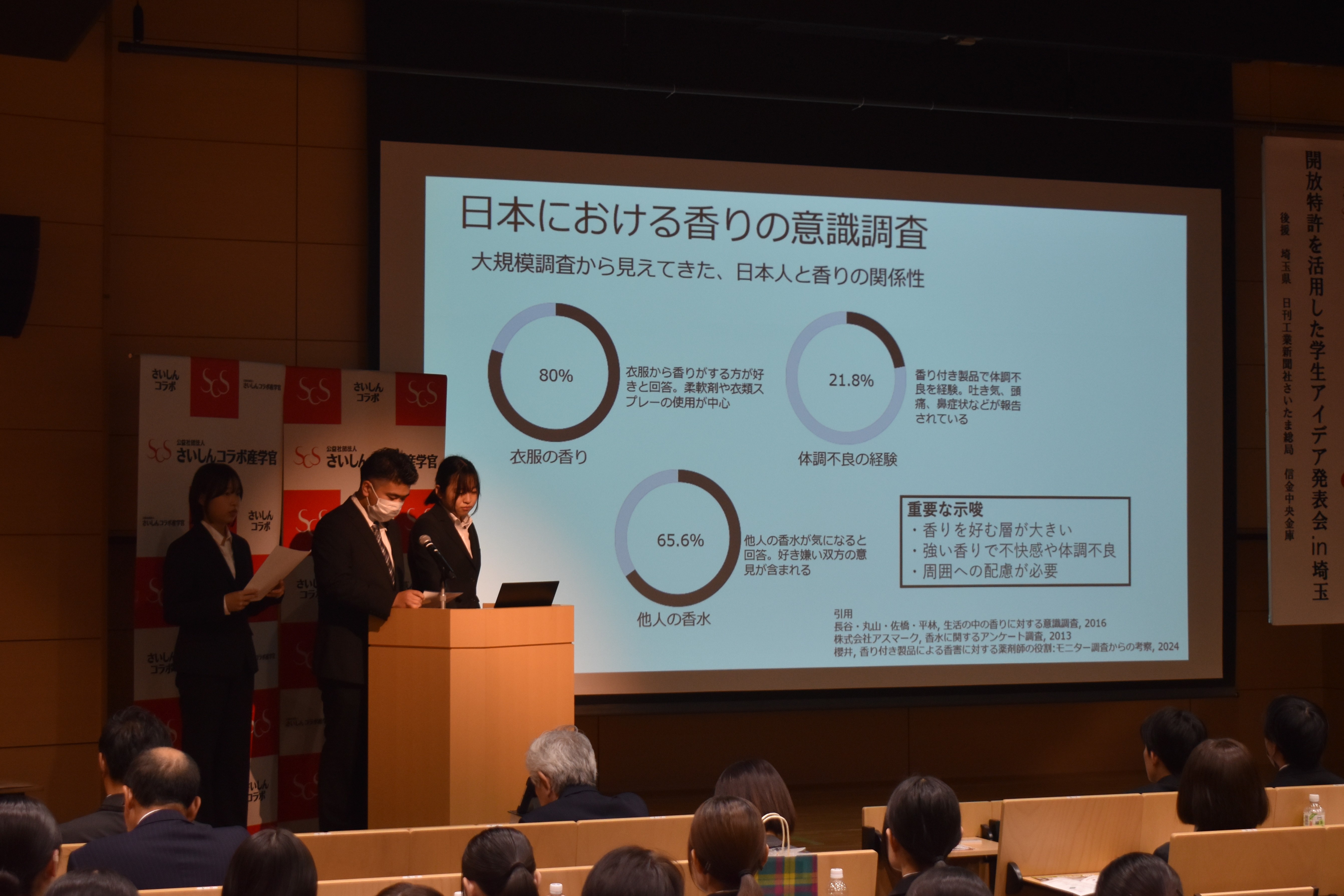 この度は「開放特許を活用した学生アイデア発表会in埼玉」に参加する機会をいただき、大変貴重な経験となりました。