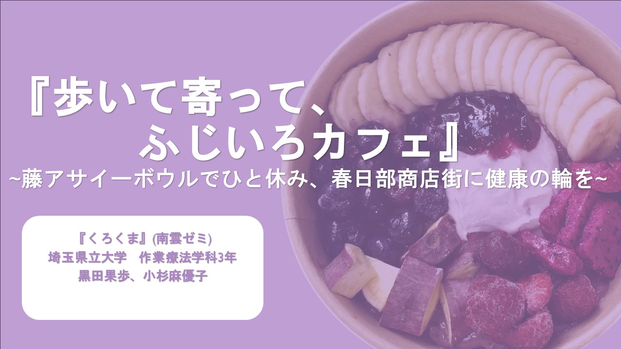●テーマ:『歩いて寄って、ふじいろカフェ』~藤アサイーボウルでひと休み、春日部商店街に健康の輪を~